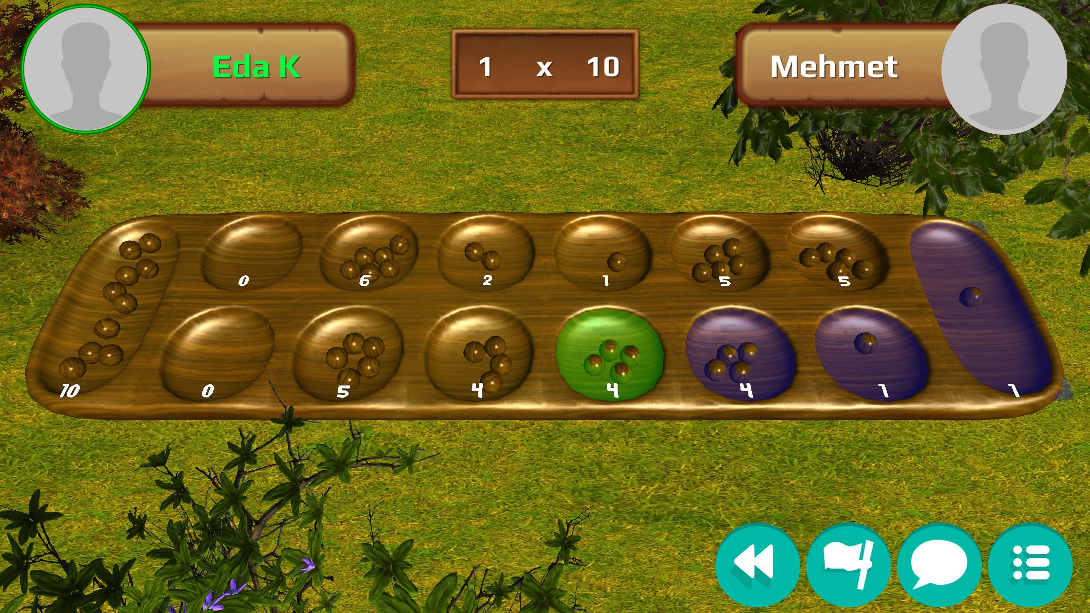- トルコマンガラ連盟が定めたルールに従って、3D マンカラボードでプレイします。