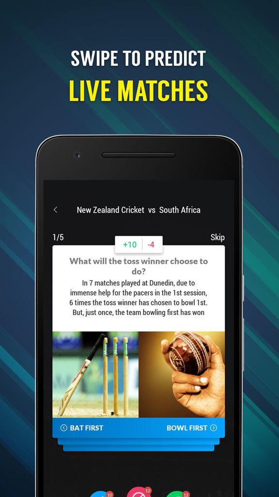 ニューエイジのファンタジースポーツへようこそ。他の無料のクリケットゲームとは異なり、統計を読んで、ライブマッチのイベントを簡単なスワイプで予測してください。それだけです!