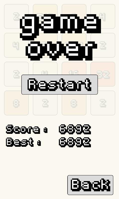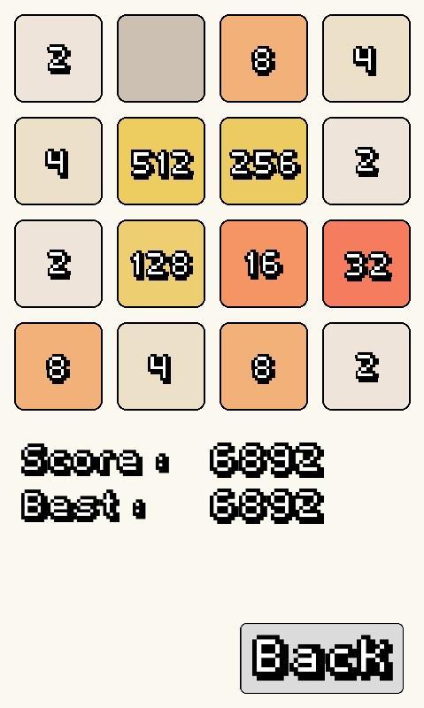 単純なコントロール。画面を横切っていくつかのスワイプとヘッドはすでに何をすべきかを理解しています。何が起こったのか気にしますか?はい、同じ値のセルが接続されていました。さて、あなたはそれらをどのくらい接続しますか?最も素晴らしいテスターが4096に到達したという伝説があります。確かに、あなたは良くなります。