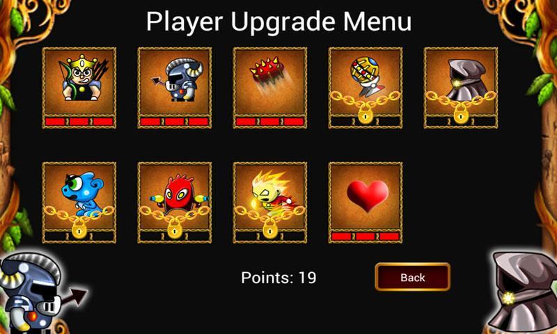 撃つことができるキャラクターは、歩いているときに撃つことができません。アップグレードは、各文字で一般的です。最初のアップグレードのための5アップグレードポイント、2回目のアップグレード用の15アップグレードポイント、最後のアップグレードの21アップグレードポイント