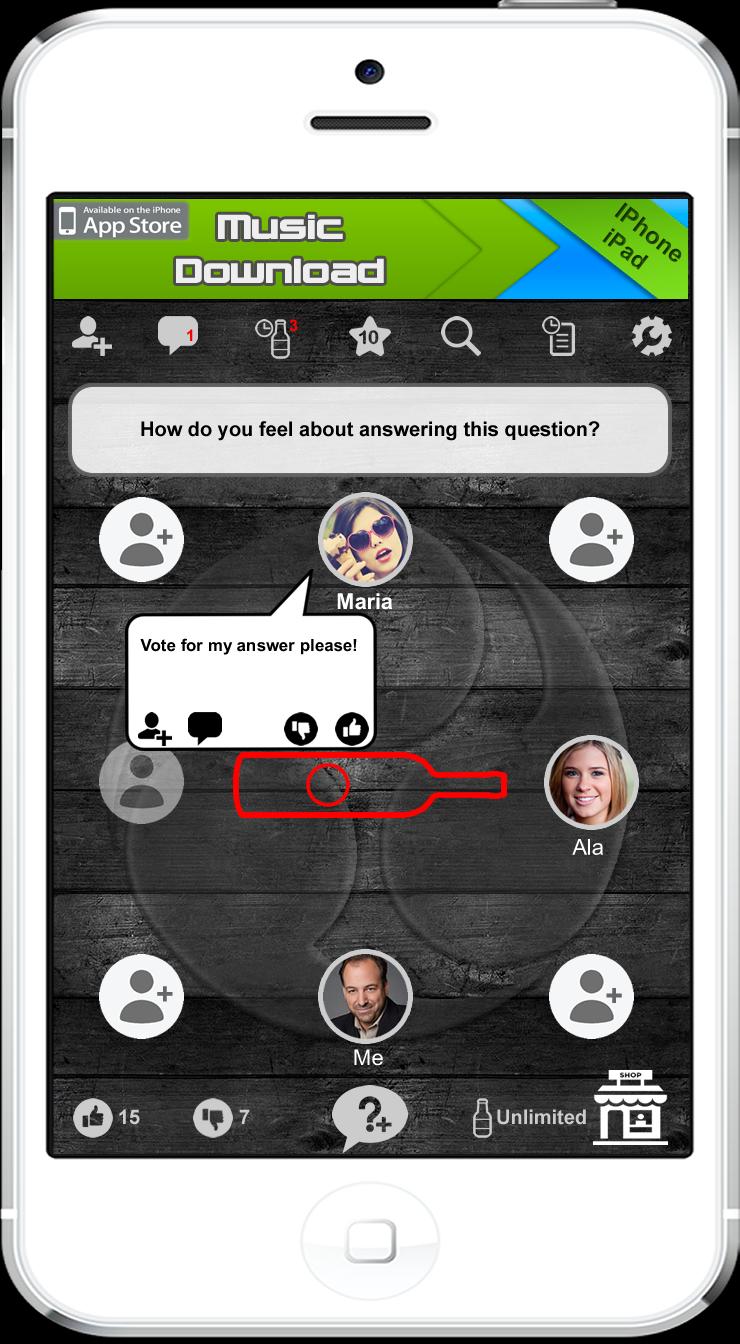 質問をしてください。 The Bottle利用可能なプレイヤーを探してスピンします。ゲームセッションにもっと多くのプレイヤーを招待したり、嫌いや嫌いな人や友人を追加したり、プレイヤーにチャットすることもできます。