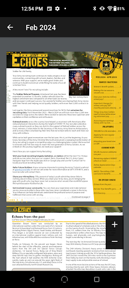 이 앱은 퇴직 서비스 사무소의 출판물 인 Army Echoes를 취하고 출판물과 그 내용에 쉽게 액세스 할 수 있습니다. 따라서 더 많은 퇴직자가 출판물에 제공하는 접근, 지식 및 정보를 허용합니다.