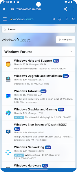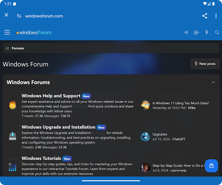WindowsForum.com Mobile을 사용하면 Google Android 장치에서 직접 WindowsForum.com에 액세스 할 수 있습니다.