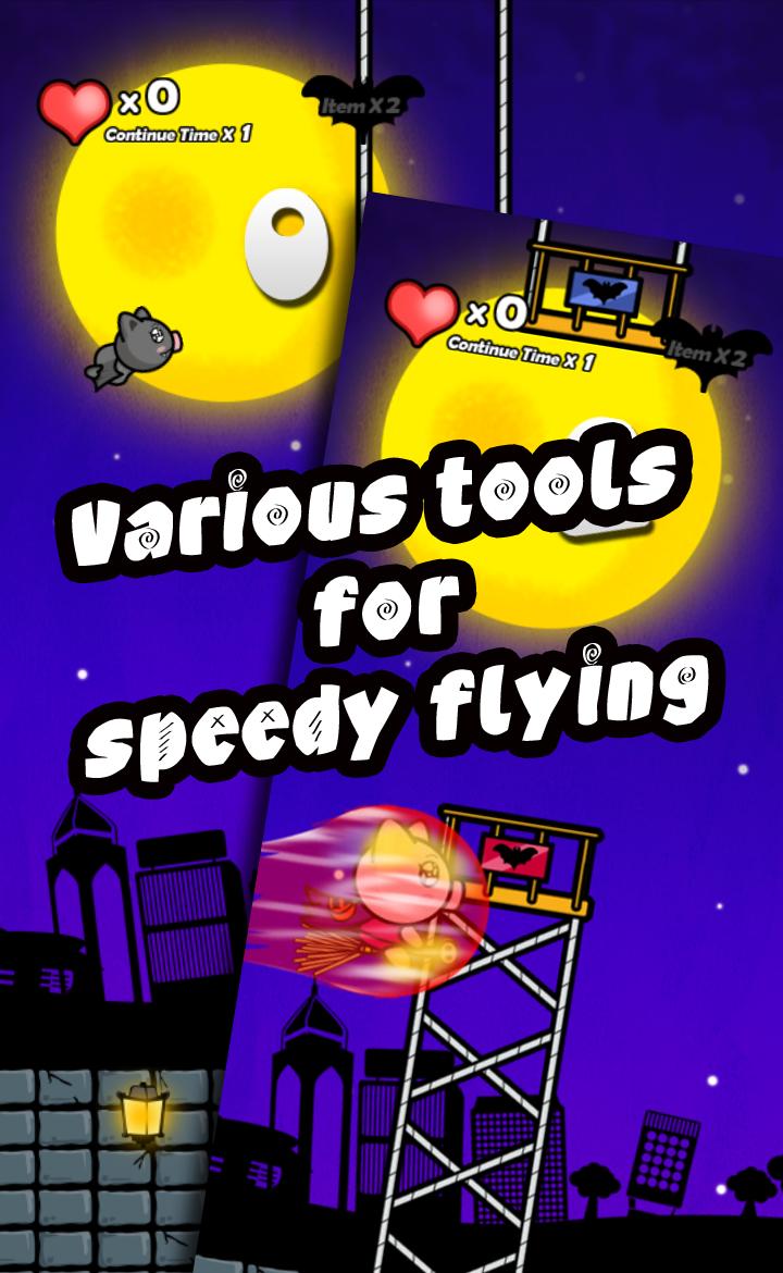 마법사 Munchu는 보름달의 밤에 날아가는 빗자루를 운반합니다.