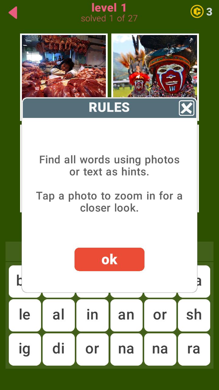 사진 당 한 단어. 레벨 당 27 단어. 게임에서 648 Words . 당신은 그들 모두를 찾을 수 있습니까? 때때로 당신은 명백한 것 이상으로 생각해야합니다. 행운을 빌어요!