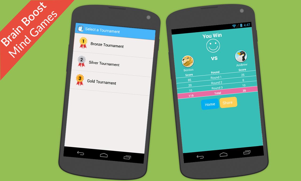 뇌 게임은 3 개의 토너먼트 청동,은 및 금으로 구성됩니다. 모든 토너먼트에는 당신과 함께 플레이 할 상대가 다릅니다. 각 토너먼트는 3 라운드로 구성됩니다. 각 Brain Boost Mind 게임 후에는 점수를 공유하여 게임에서 더 많은 흥분을 가져올 수 있습니다.