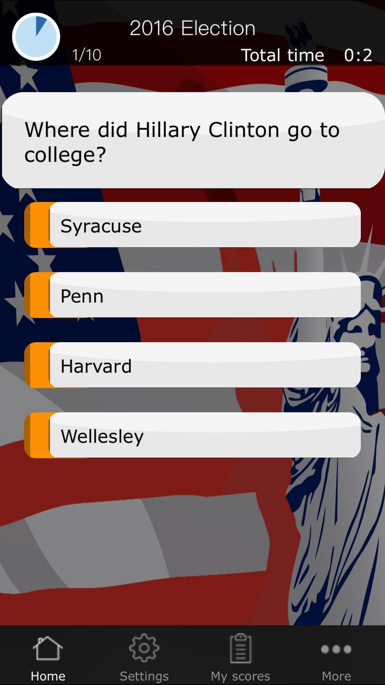이 퀴즈 게임은 미국의 대통령 선거 2016에 관한 것입니다.