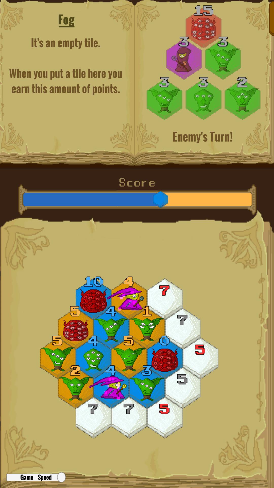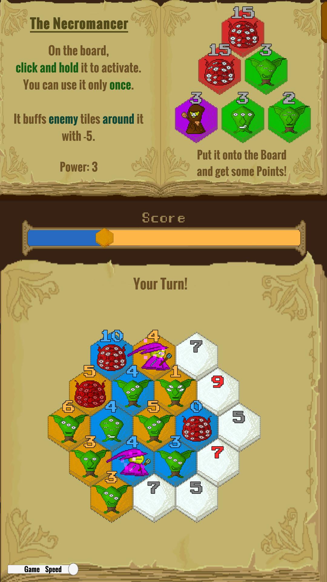 Hexroes는 각 플레이어가 육각형 보드의 우위를 위해 싸우는 1- 액션 턴 기반 리소스 전략 게임입니다. 동일한 리소스를 공유하면 플레이어는 RPG 장르의 캐릭터 풀에서 타일을 선택하여 보드에 올릴 수 있습니다. 매 턴마다 플레이어는 자신의 캐릭터에 따라 포인트를 받고 적을 이길 수 있도록 점점 가까워집니다.