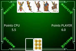 7과 절반은 40 카드 데크 (1에서 7까지의 카드 값, 3 개의 얼굴 카드, 4 개의 정장)와 함께 연주됩니다. 얼굴 카드는 각각 절반의 가치가있는 반면, 에이스에서 7 세까지의 카드는 명목상의 가치가 있습니다. 목표는 7½을 초과하지 않고 가능한 가장 높은 점수에 도달하는 것입니다.