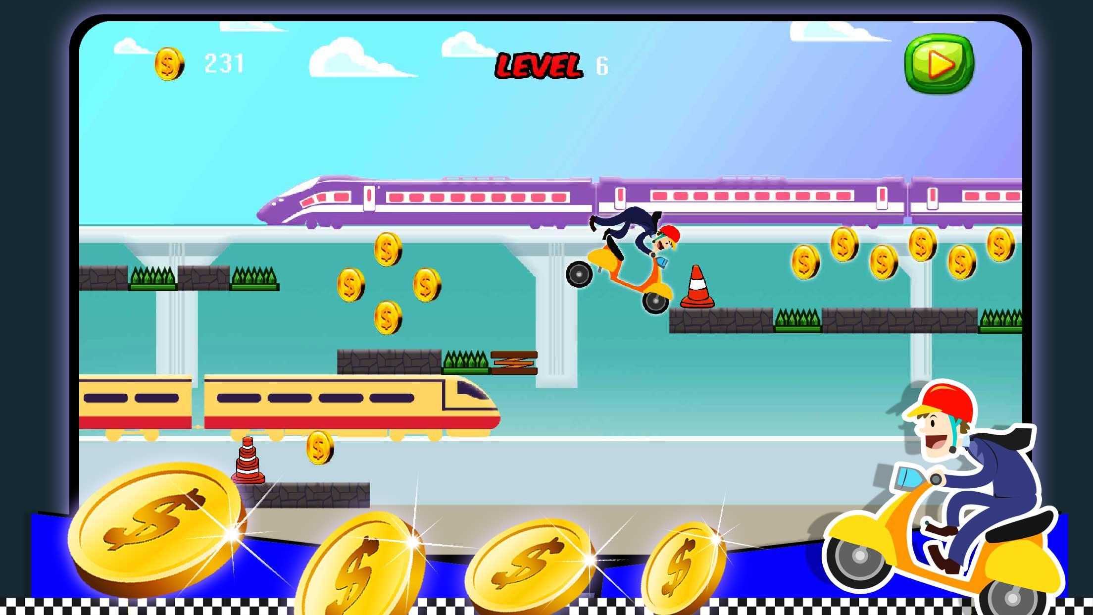 Subway Race Bike 기차와 다른 장애물을 피하고 길에 동전과 다른 음식을 모아서 앞으로 나아가고 있습니다. 승자가되기 위해 위험 장애물을 뛰어 넘으십시오. 이 Subway Race Bike 게임은 훌륭한 그래픽, 간단한 컨셉 및 쉬운 스크린 컨트롤로 멋진 레이스 경험을 제공합니다.