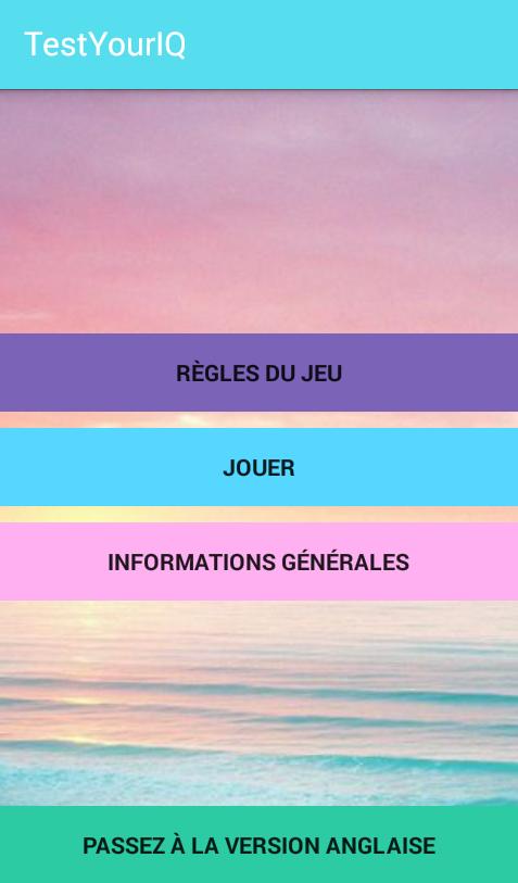 이것은 IQ를 테스트하도록 특별히 설계된 최고의 IQ 앱입니다. 이 앱은 영어와 프랑스어로 제공됩니다. 이 앱에는 15 개의 텍스트 질문과 5 개의 이미지 질문이 포함되어 있습니다. 앱은 오프라인 및 온라인으로 모두 사용할 수 있습니다.
