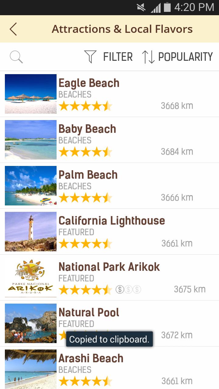 ✔ Painel de viagem ★ Novo recurso ★ O painel Trip reúne seus diários de viagem, itinerários e lugares favoritos em Aruba em um só lugar. Você pode compartilhar com amigos e imprimir seus itinerários!