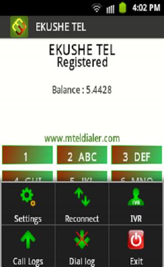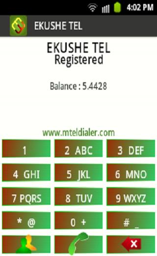 EKUSHE TEL Mobile Dialer é um discador Android muito fácil e fácil de usar para chamada de VoIP para celular. O discador pode ser executado sem problemas em qualquer versão do telefone Android. Este aplicativo instalável pequeno e fácil ajuda você a se conectar com o seu provedor de serviços fornecido com interruptores suaves rapidamente. EKUSHE TEL Mobile Dialer exigiu uma largura de banda mínima para conectar e originar chamadas VoIP. O usuário pode cobrar através de seus operadores de telecomunicações por serviços de dados. É executado sem problemas em qualquer rede privada