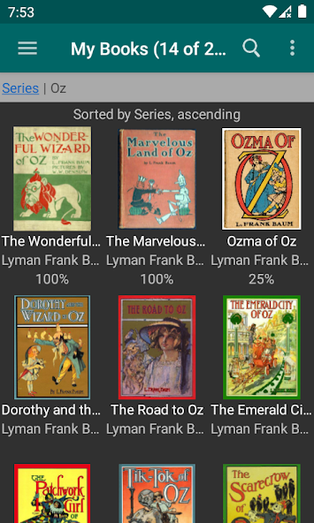 5) [Full] Use o navegador de informações do livro para explorar sua biblioteca navegando informações sobre livros, como autores, categorias, séries, listas de livros e muito mais.