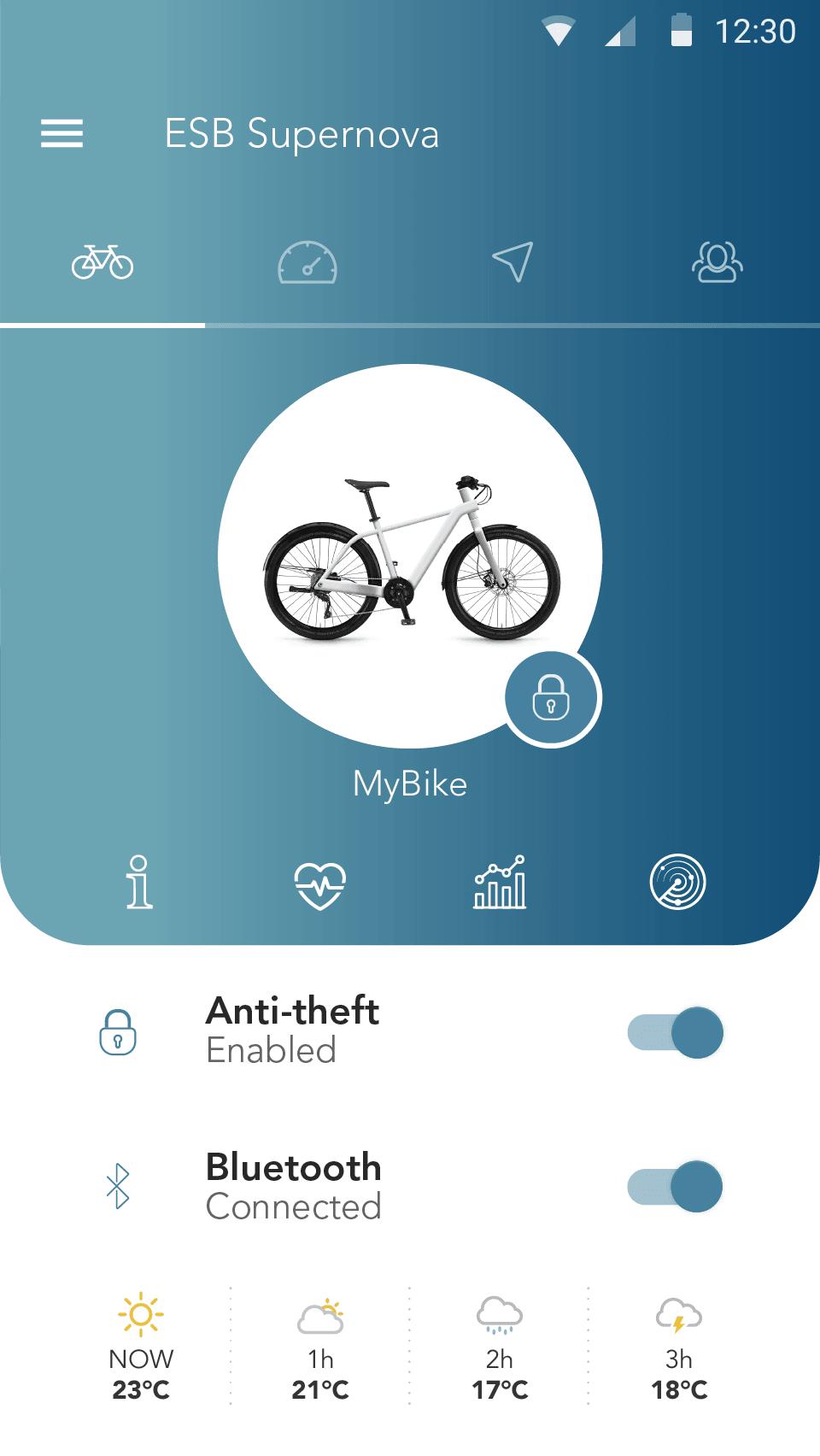 Descubra os outros recursos do aplicativo Ebike conectado ao Bulls: graças à integração da tecnologia ESB , o sistema de conectividade recupera os dados da sua bicicleta eletrônica e os envia para uma plataforma em nuvem via GPS/GPRS e Bluetooth.