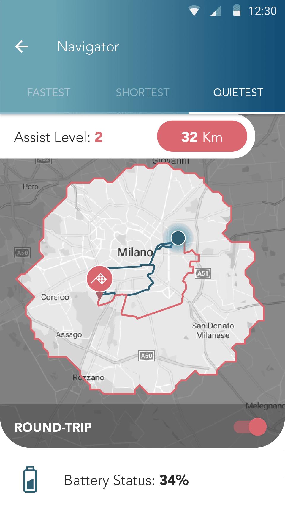- Navegador e alcance real: Quando você define um destino no mapa, também pode ver a área que pode andar com a carga restante da bateria e auxiliar o nível que está usando.