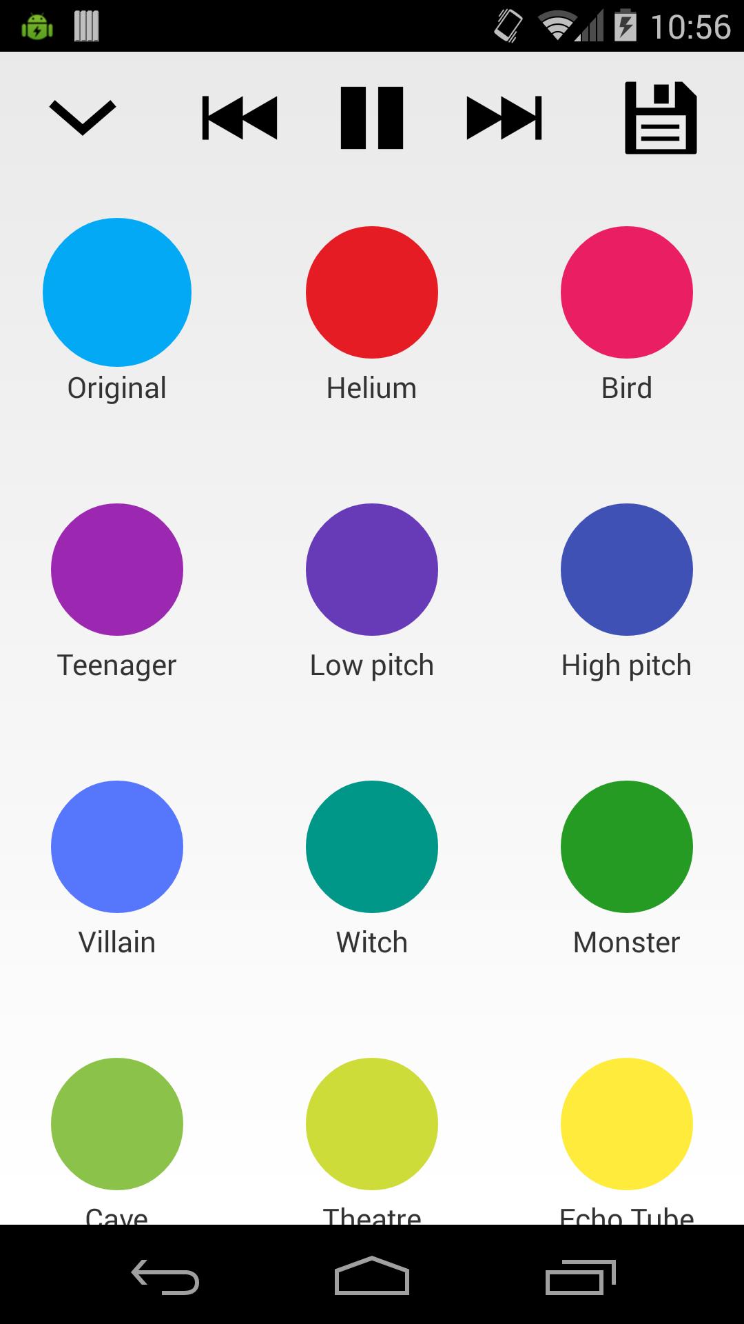 Bird, Robot, Darth Vader etc. Você também pode salvar a voz como seu toque, alarme ou notificação ou compartilhá -la.