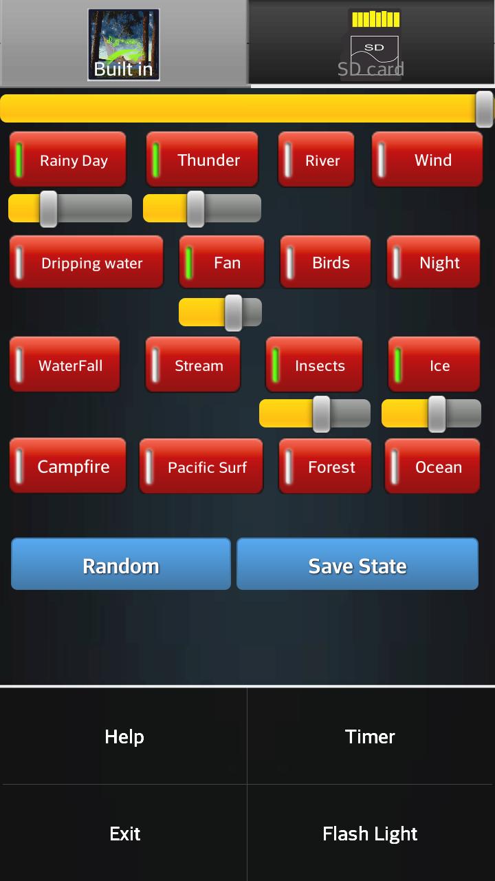 * Grande variedade de sons relaxantes naturais cuidadosamente escolhidos de chuva, rio, vento, ventilador, pássaros, noite, queda de água, riacho, insetos, fogueira, floresta, oceano e combinações de todos, cada um com uma opção para volume variável.