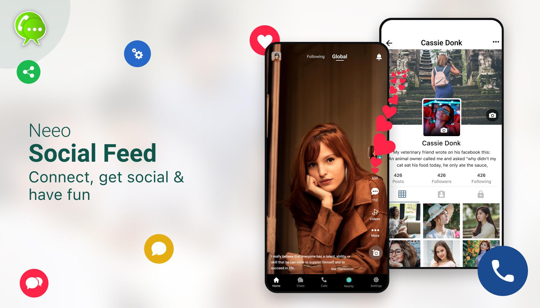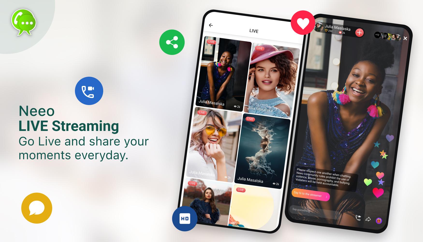 Os recursos sociais Neeo ajudam você a se expressar e se conectar com as pessoas que você ama. Faça parte do Neeo Social e envie suas imagens e vídeos da galeria e tire uma foto ao vivo. Torne sua postagem mais atraente usando efeitos de cores incríveis. E compartilhe -o de forma pública e privada. Com o Neeo Social, descubra o conteúdo de vídeo dos criadores que você já ama, ou novas contas que você pode gostar ou descobrir as últimas tendências.