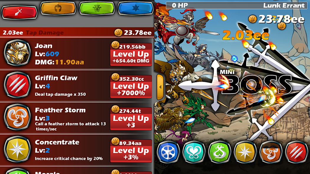 Basta tocar em Titan Crush! Toque e atualize sua equipe para um poderoso exército de deusa!