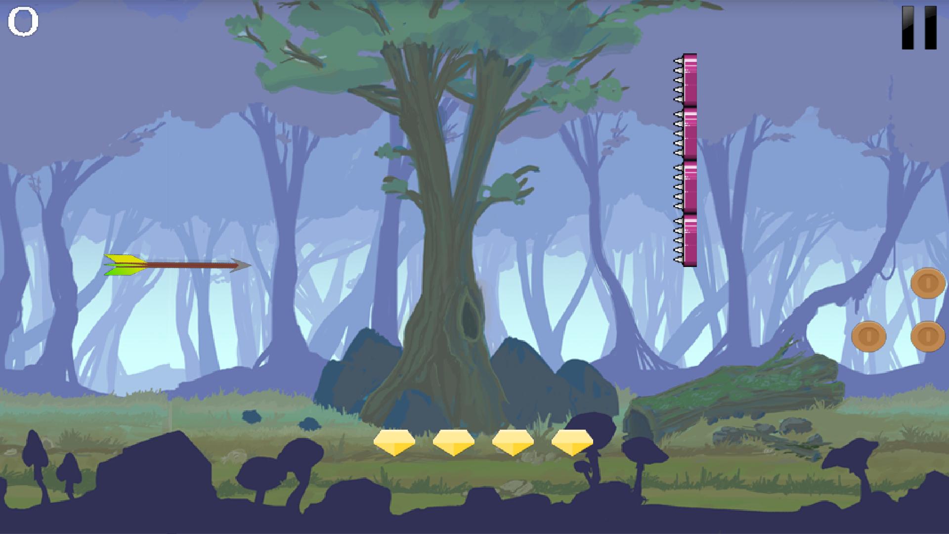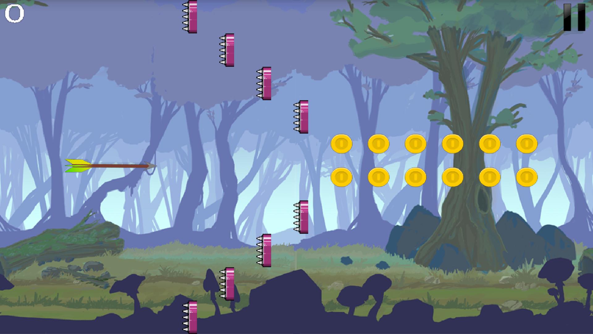 Piloto sua flecha pela área, evitando obstáculos e coletando moedas, gemas