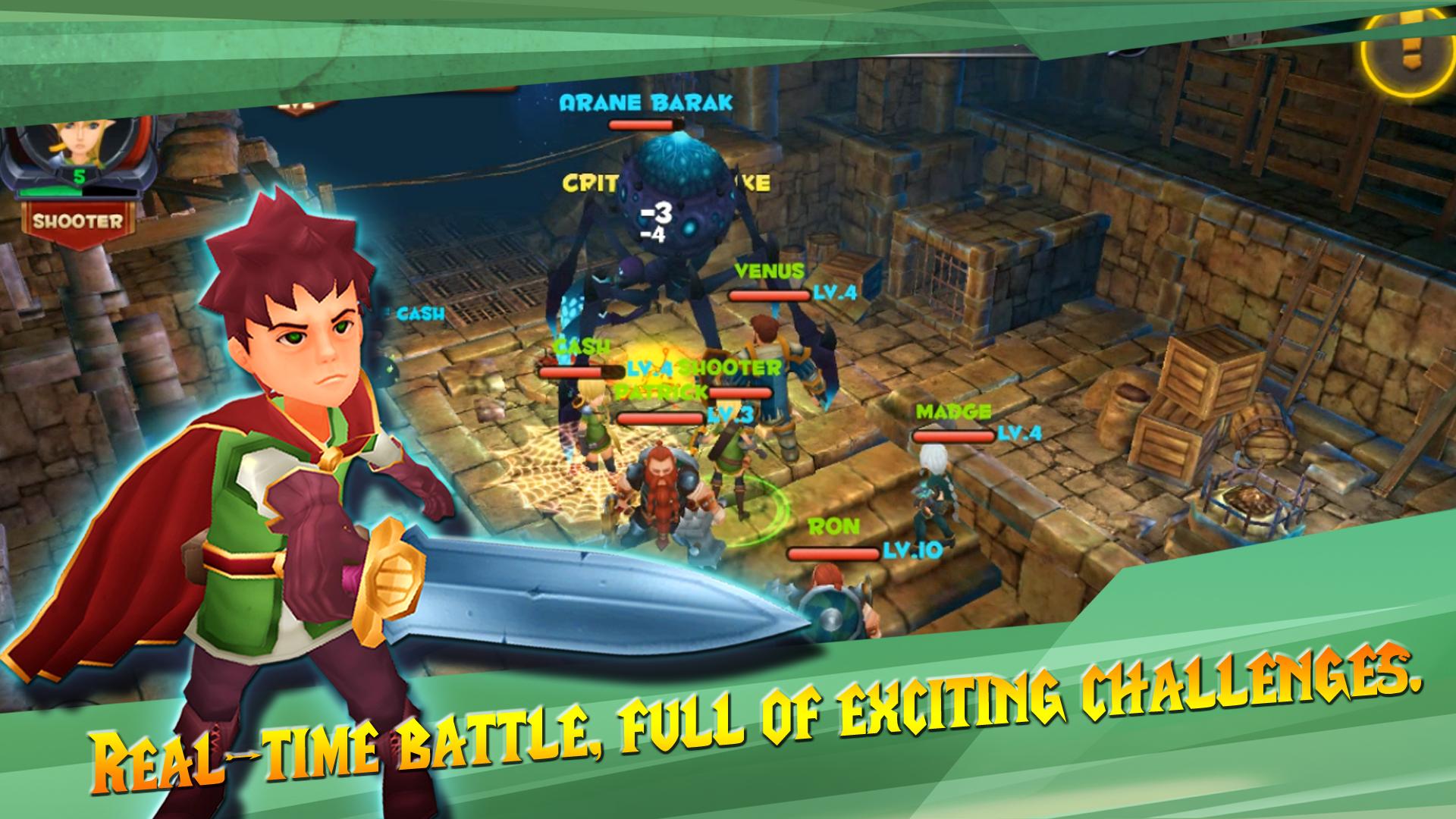 Junte -se a amigos para explorar as masmorras e superar o chefe.