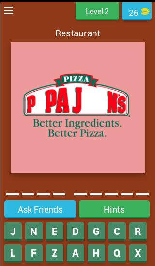 Existem logotipos de restaurantes Varius, onde você deve descobrir qual restaurante é.