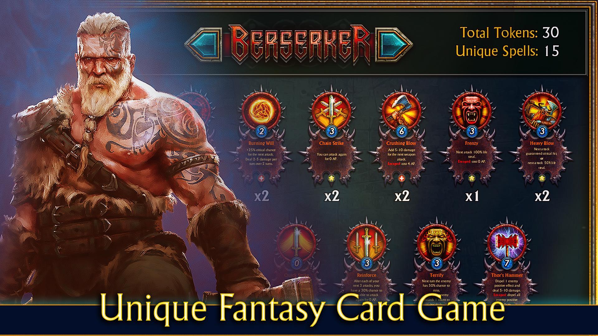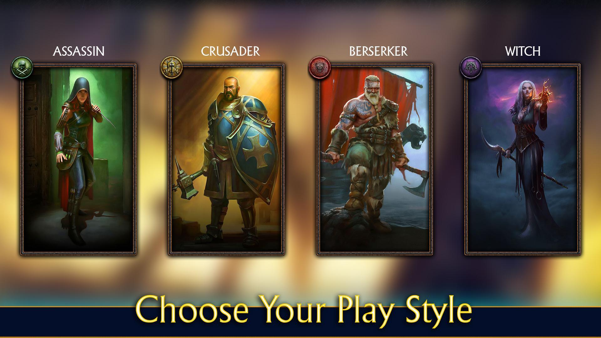 Em Ironbound : Card Battles RPG que você pode escolher: um poderoso Berserker, um poderoso cruzado, um assassino furtivo e mortal, uma bruxa que empunhava mágica ou mesmo um pirata imprudente.