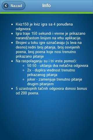 Koala kviz é um jogo de questionário com 4 respostas oferecidas pelas quais o objetivo é vencer em 150 segundos, com a ajuda de seu conhecimento e uso sábio da ajuda disponível o máximo possível. Semelhante aos jogos de teste padrão, um milionário e um quebra -cabeça.