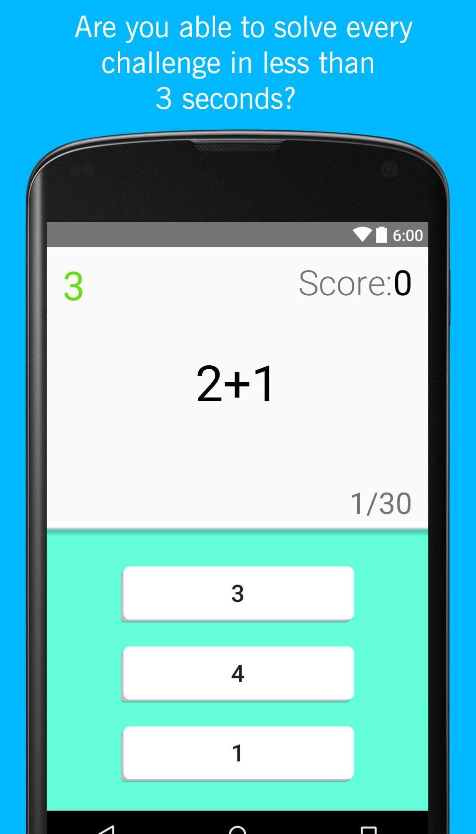 Mind Master é um jogo no qual você deve resolver operações de matemática simples em 3 segundos, quanto mais operações você resolve, mais alta você pontua !!
