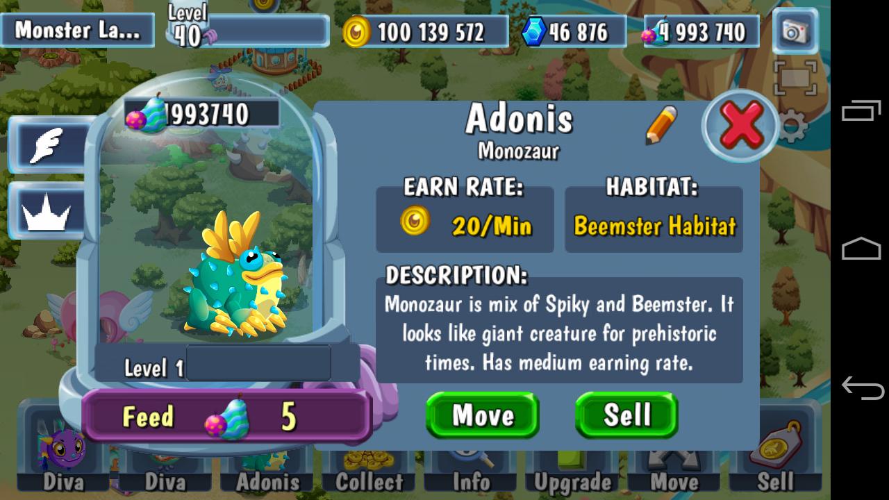 Você pode construir sua própria Monster Land imaginária. Construa habitats de monstros, crie monstros fofos e engraçados. Reproduza e obtenha novas combinações estranhas com criação de tipo cruzado. Cultive alimentos especiais de monstros em fazendas e alimente seus monstros. Decore sua Monster Land com ótimos itens de decoração. Visite e ajude seus amigos com suas terras. Otimize sua economia para maximizar seus ganhos.