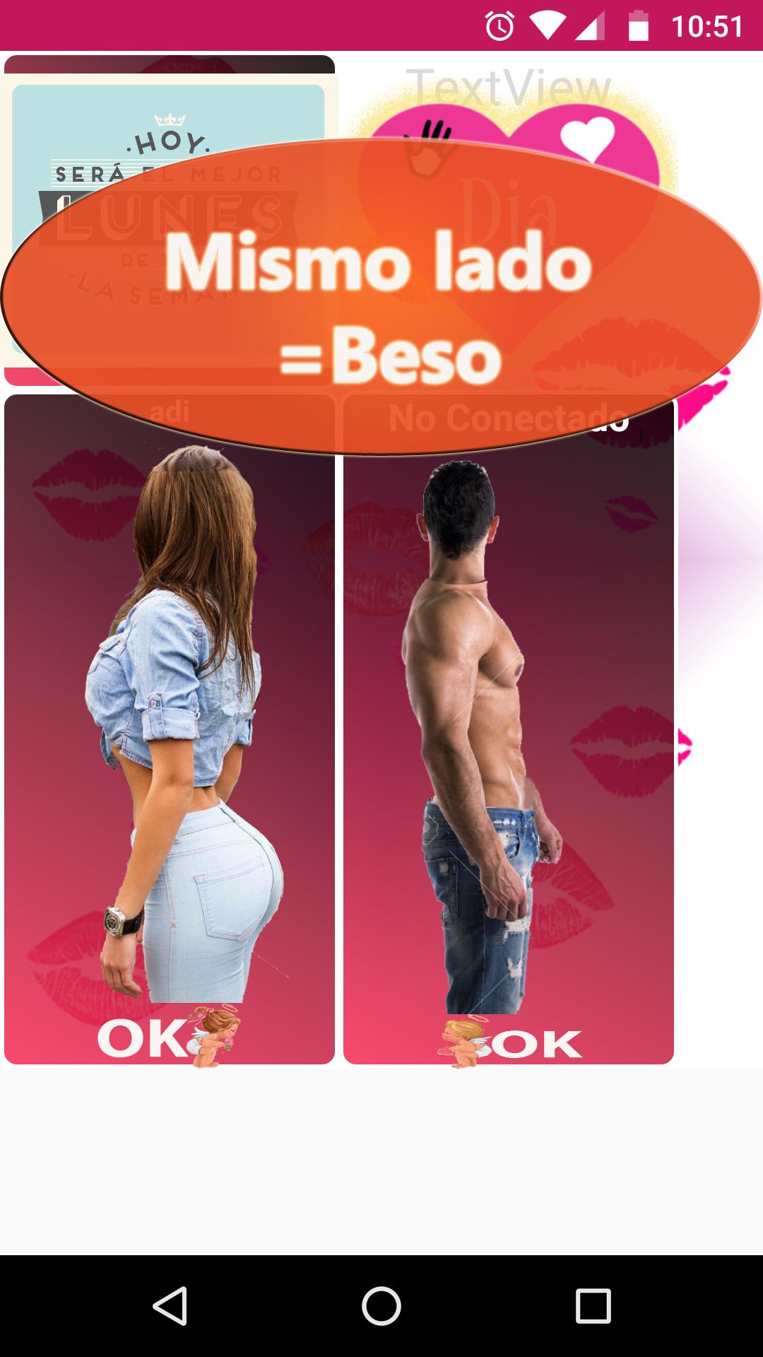 Obtenha beijos de uma maneira muito fácil e divirta -se distribuindo cachetas nos dias da semana, começamos com o primeiro dia de segunda -feira se os dois selecionarem o endereço com o avatar, o homem beijará a garota e, se estiver na direção oposta, a mulher dará um tapa no homem e assim por diante.