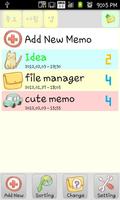 « Cute memo » - это простое и удобное применение заметки. Вы можете опубликовать несколько заметок и организовать их, используя цвета, категории и милые значки. Функция безопасности защищает ваши важные посты от нежелательного внимания. Кроме того, вы можете опубликовать свои записки в виде виджета, где бы вы ни хотите. Ваши сообщения могут быть легко перенесены на другой телефон, вы никогда больше не потеряете другой пост!