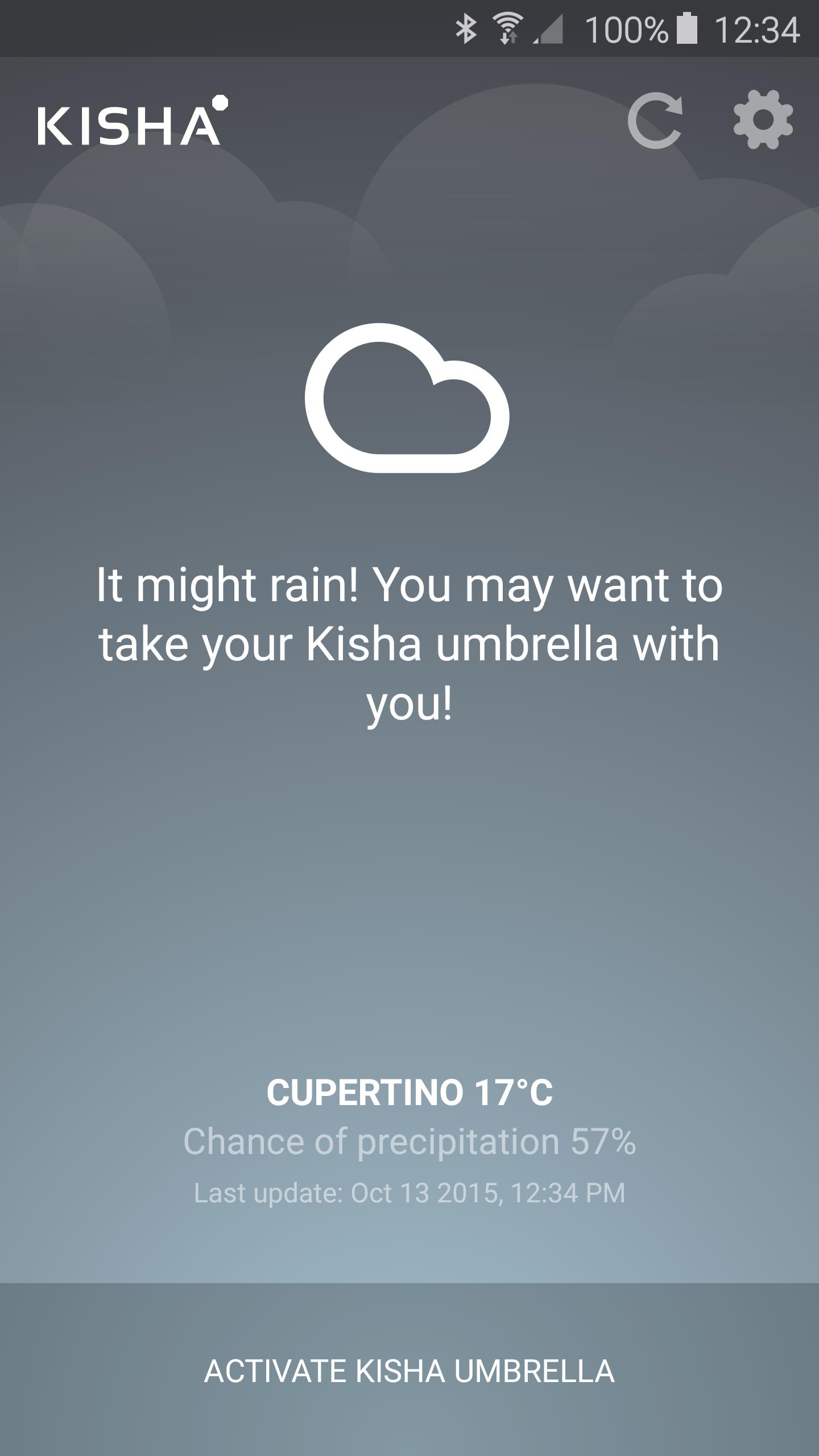 Kisha Umbrella - это уникальный продукт, который состоит из зонтика с чипом Bluetooth, подключенным к смартфону. Это позволяет вам никогда не забывать свой зонтик в общественном месте, например, в ресторане, пабе, Meetup или конференции, постоянно сохраняя связь между вашим смартфоном и вашим зонтиком «живым». После того, как подключение будет проиграно, вы получите уведомление на своем смартфоне. Он также проверяет прогноз погоды утром и дает вам узнать, стоит ли взять с собой свой зонт Kisha .