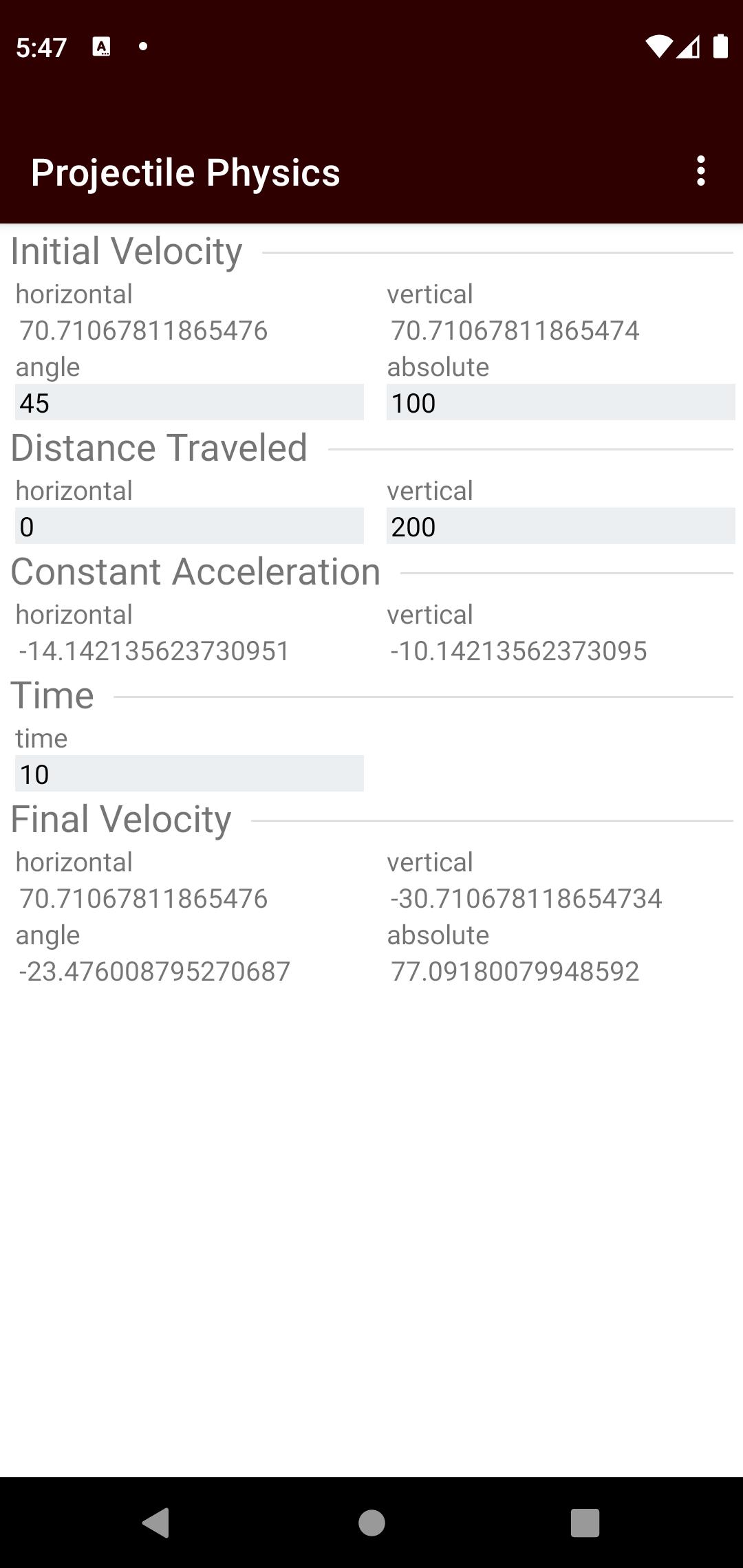 Эта программа решает расстояние, ускорение, время и начальная и окончательная скорость. Все уравнения решаются в режиме реального времени, что позволяет быстро переключаться между фокусировкой на различных аспектах модели.