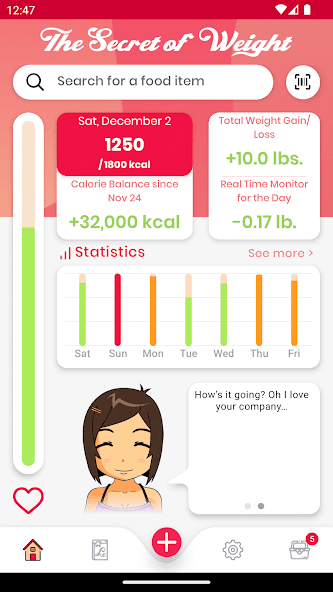 The Secret of Weight объясняет все! Количество калорий, которое вы можете проводить каждый день. Что произойдет, если вы преодолеете свой бюджет? Как исправить, когда вы зажигаете ... самое главное, приложение упрощает подсчет калорий для вас, поскольку вы можете выбрать то, что вам нужно было съесть, используя картинки с едой в приложении!