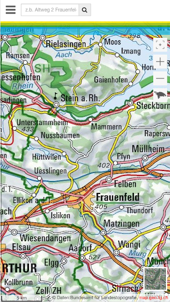 Добро пожаловать на географическую информационную платформу Кантона Тургау. ThurGIS является аббревиатурой для «Географической информационной системы Thurgauer» и предлагает вам двумерные взгляды с помощью геодеферных и интерактивных карт.