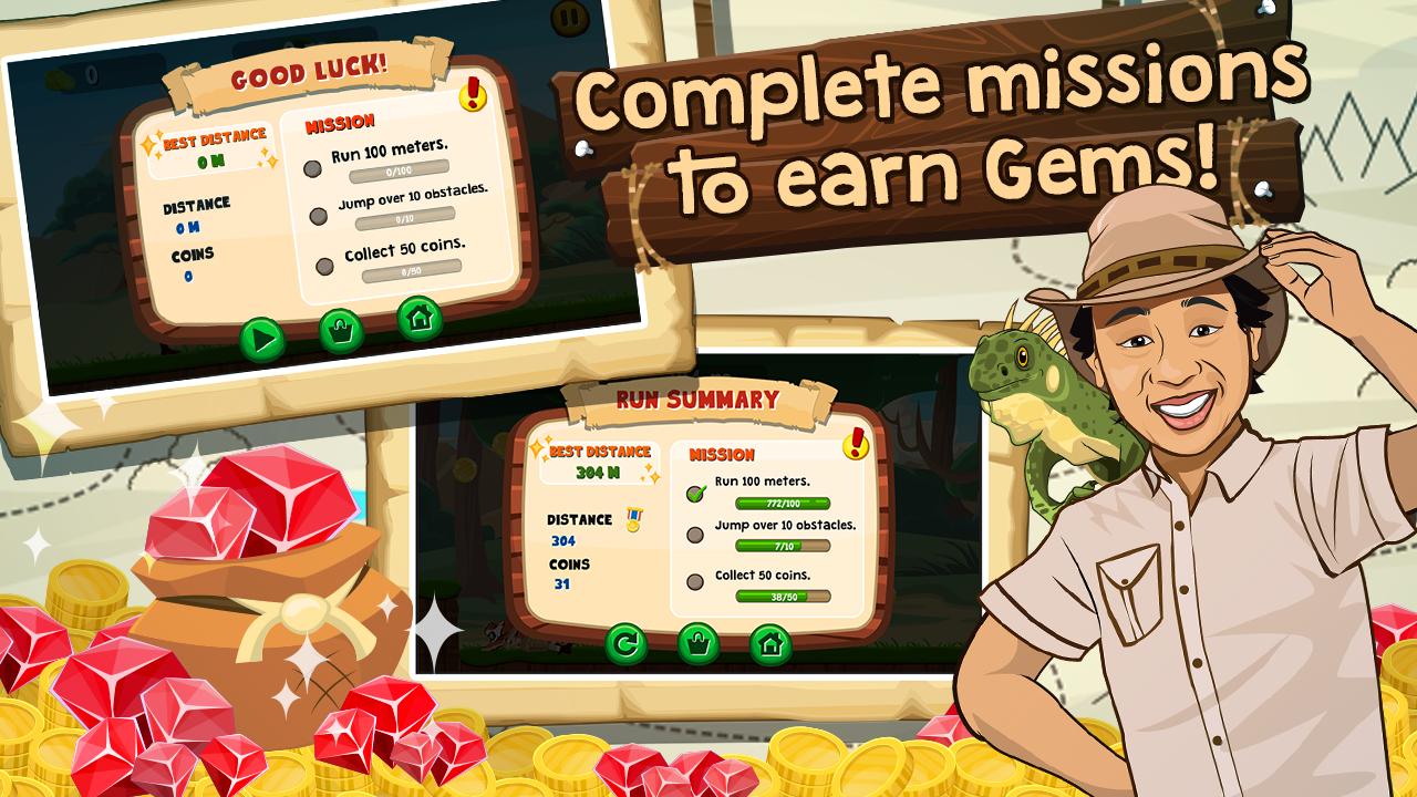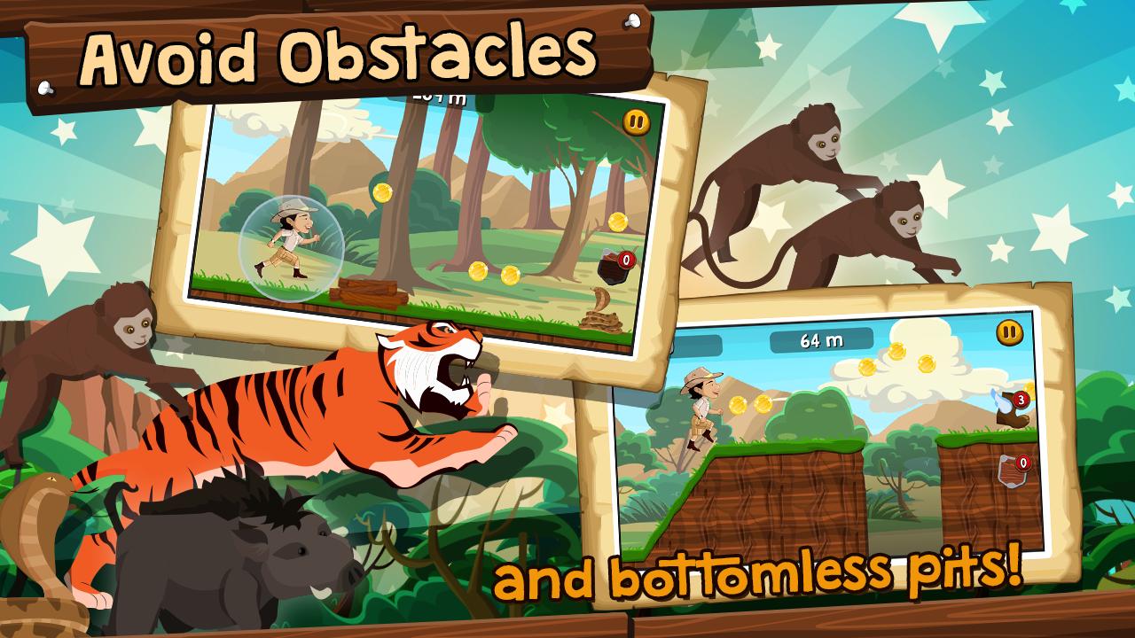 Помогите Куя Ким перепрыгнуть через бездонные ямы и уклоняться от перемещения валунов, тигров и змей! Посмотрите, как далеко вы можете пойти с этой классической игрой платформеров.