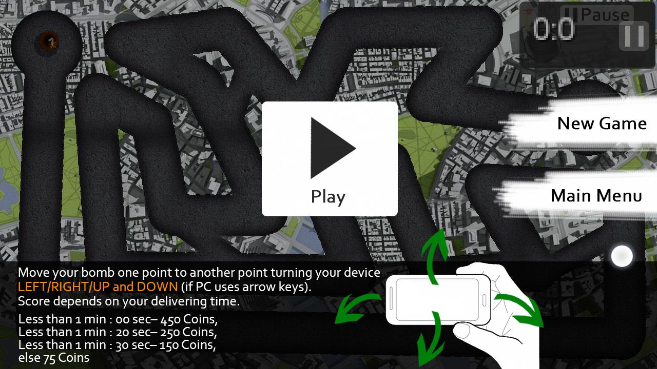 Переместите свою бомбу в одну точку в другую точку, поворачивая устройство влево/вправо/вверх и вниз (если ПК использует клавиши со стрелками). Оценка зависит от вашего времени доставки.
