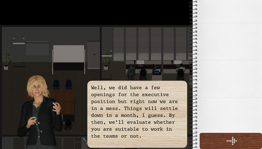 Это первая игра в антологии Dream City Series. Вы возьмете роль шпиона, отправленного кем -то для выполнения специальной миссии. Взаимодействуйте с коллегами, решайте их проблемы и старайтесь заменить нынешнего генерального директора. По пути откройте для себя секреты и сформируйте альянс, пытаясь не уволить.