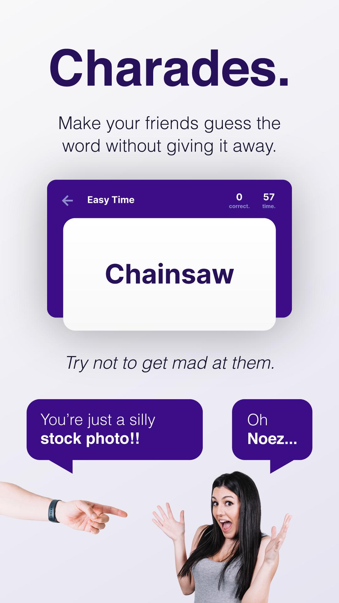 Шарадскую игру можно играть в автономном режиме без Wi -Fi, и она состоит из тысяч слов, которые вы читаете своим друзьям. Это идеальная игра против вашей трезвости. Вы также можете играть с грязными картами, если вы выбрали.