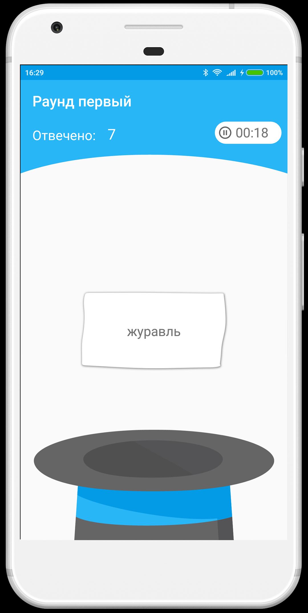 С приложением «Шляпа» вам не нужен инвентарь для игры. Играй где угодно! Все, что вам нужно, это ваш смартфон и группа друзей.