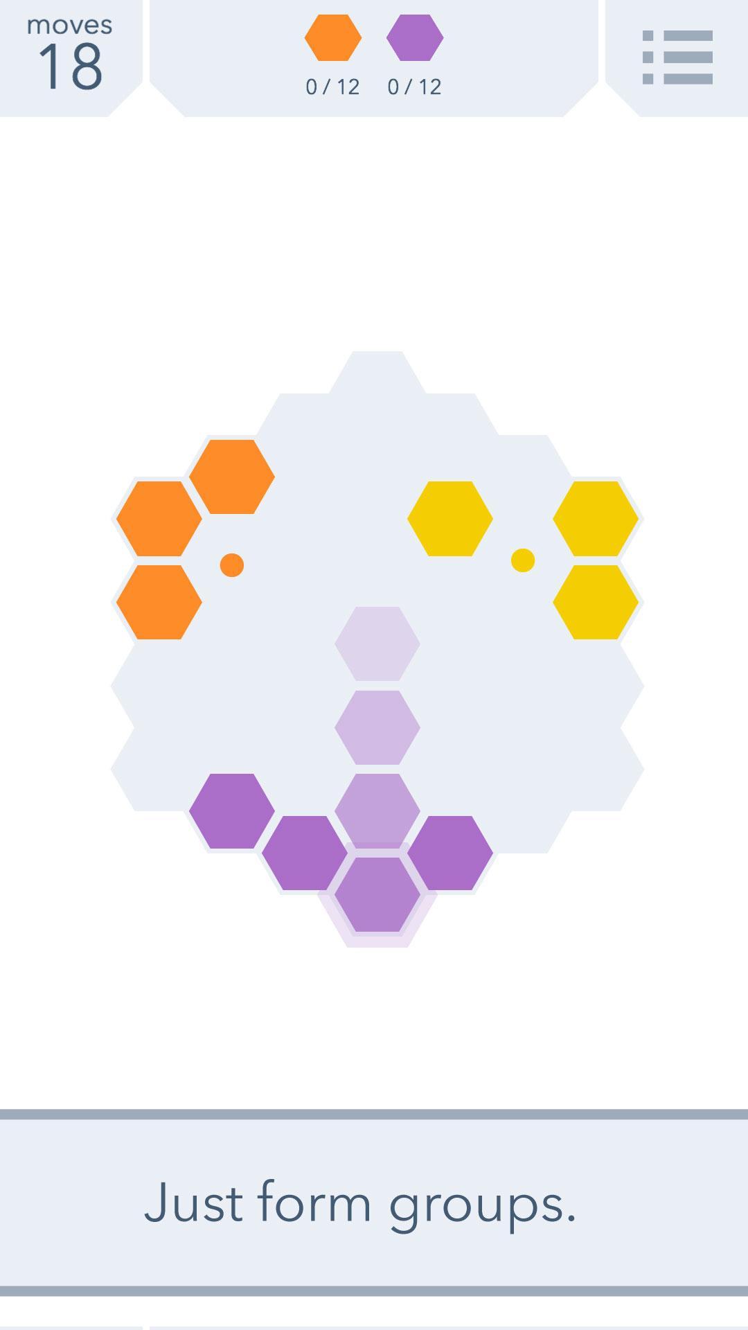 Просто создайте группы гексагонов в этой гладкой, изящной головоломке.