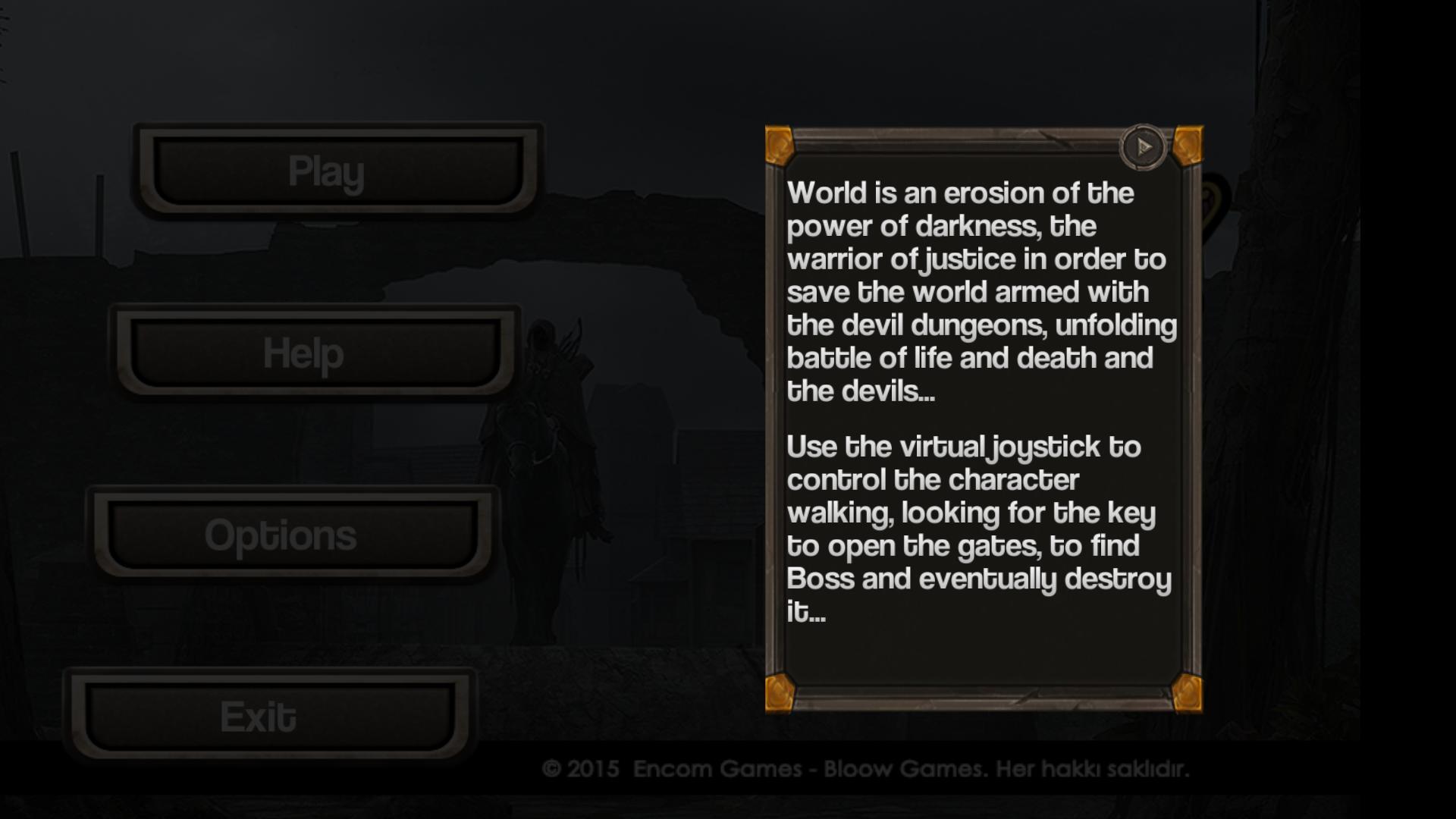 Мир - это эрозия силы тьмы, воина справедливости, чтобы спасти мир, вооруженный дьявольскими подземельями, разворачивающимися битвой жизни и смертью и дьяволами ...
