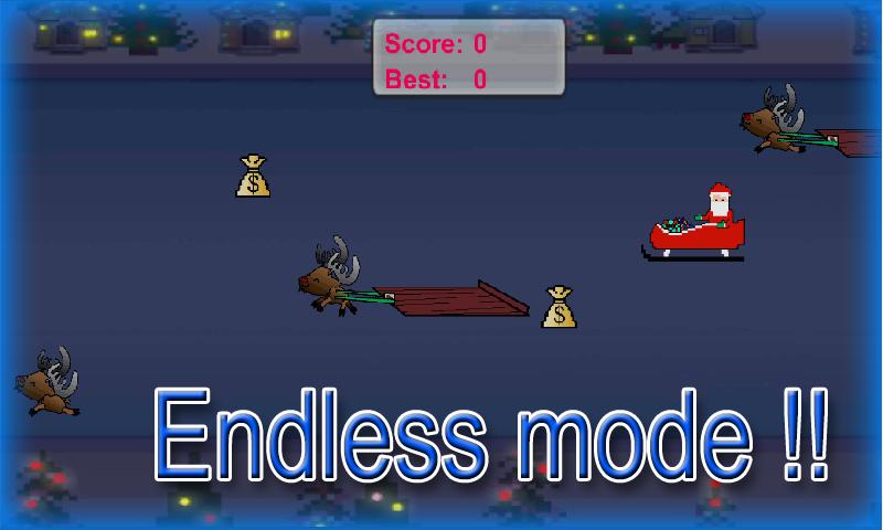 Контролируйте Санта -Клаус, чтобы кататься на санях и сделать подарок каждому оленю, двигаясь рядом с ними. Санта автоматически бросит подарок на их сани, и они улетят, чтобы отправить их по всему миру. Не сталкивайтесь с задней частью оленей сами или оленя сами по себе, или его игра.