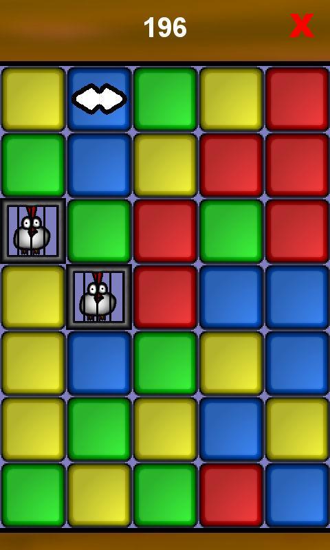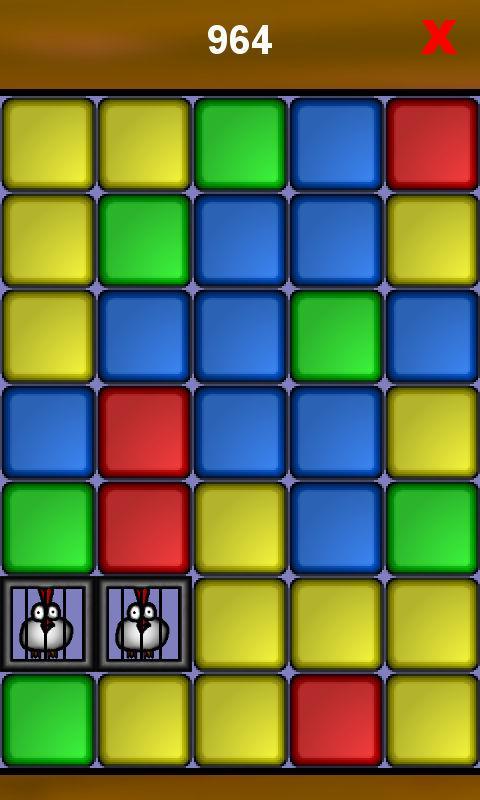 Нажмите на два или более одинаковых цветовых блоков, чтобы удалить их. Получить цыплят внизу, чтобы спасти их.