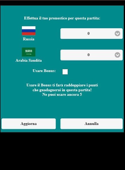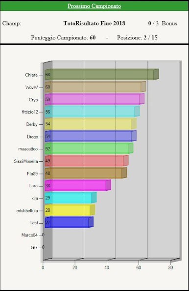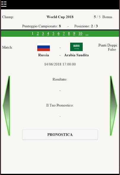 Благодаря этому приложению можно предсказать результаты чемпионата. В каждой игре они будут назначены от 0 до 6 баллов на основе прогноза, и рейтинг лучших будет разработан ... и если вы хорошо сыграли свои бонусы, очки могут удвоиться !!!