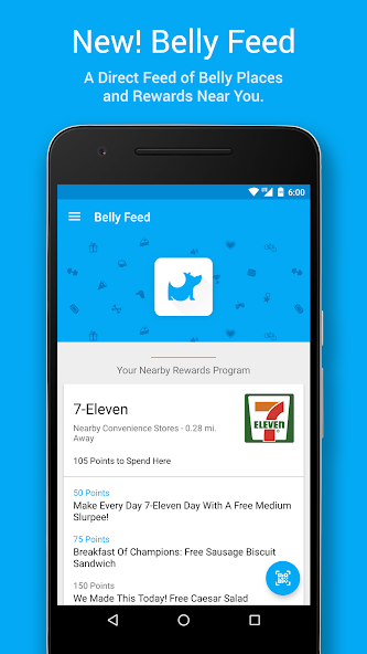 ด้วย Belly เราเสนอบัตรความภักดีของลูกค้าหนึ่งใบเพื่อแทนที่ส่วนที่เหลือ เชื่อมโยงแอพมือถือไปยังการ์ด Belly ของคุณซึ่งสามารถรับได้ที่ธุรกิจ Belly ใด ๆ ใช้ฟีเจอร์ "สถานที่ใกล้เคียง" ของแอพเพื่อค้นหาสถานที่ไปยัง Belly เมื่อคุณออกไปข้างนอกในเมือง รับกาแฟฟรีหนึ่งถ้วยที่ร้านโดนัทตามถนน ตั้งชื่อแซนวิชแห่งเดือนที่ร้านอาหารท้องถิ่นของคุณ เป็นครั้งแรกที่คุณสามารถมีเค้กของคุณและกินมันด้วยหรืออย่างน้อยก็มีตัวเลือกในการผลักมันเข้าไปในใบหน้าของคนทำขนมปัง