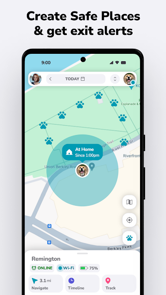 สร้างโซนที่ปลอดภัยรอบ ๆ เครือข่าย Wi-Fi ของคุณเช่นบ้านหรือรับเลี้ยงเด็กของคุณ รับการแจ้งเตือนทันทีเมื่อใดก็ตามที่สัตว์เลี้ยงของคุณออกหรือเข้าสู่พื้นที่ที่กำหนดเหล่านี้ทำให้คุณสบายใจ