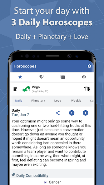 เริ่มต้นวันใหม่ด้วยการตรวจสอบ คำทำนายดวงชะตาประจำวัน ของคุณ คุณจะได้รับสามในแต่ละวัน คุณยังสามารถดูตำแหน่งดาวเคราะห์ปัจจุบัน